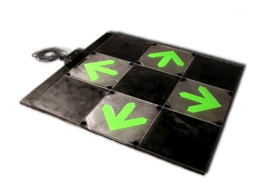 The rigid USB dance pad was an experiment to test a new switch design for the foot "buttons" as well as methods of interfacing with existing USB control systems. There seemed to be no point in buying dedicated USB controller chips or programming a microcontroller when a USB gamepad could be had for nearly the same expense (and is already programmed).Assembly instructions are available in The Construction of a Rigid Dance Pad Using Common Materials. Excerpts from this guide were featured in the August 2007 edition of PCFormat Magazine. This design proved to be quite robust, but not very economical. It turns out that wood and plexiglass are relatively expensive when purchased in small quantities. The button design functioned adequately with aluminum foil contacts, but conventional solder did not adhere well. The problem was remedied with small screws that acted as binding posts for the wires that were connected to the USB control circuit. The screws had rounded heads so as not to interfere with gameplay and to avoid safety issues if playing in bare feet.